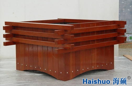 3、戶外花箱成型后,還要進行細致的人工打磨,進行戶外景觀防腐木花箱的最后一步—噴漆。
