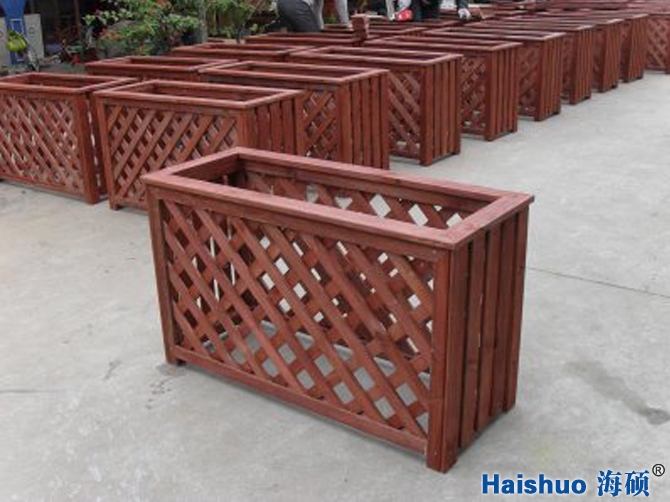 3、戶外花箱成型后,還要進(jìn)行細(xì)致的人工打磨,進(jìn)行戶外景觀防腐木花箱的最后一步—噴漆。