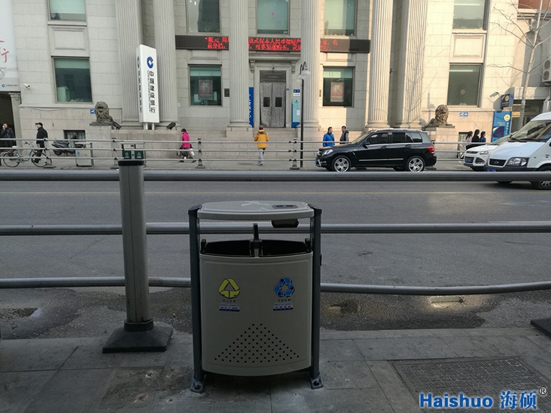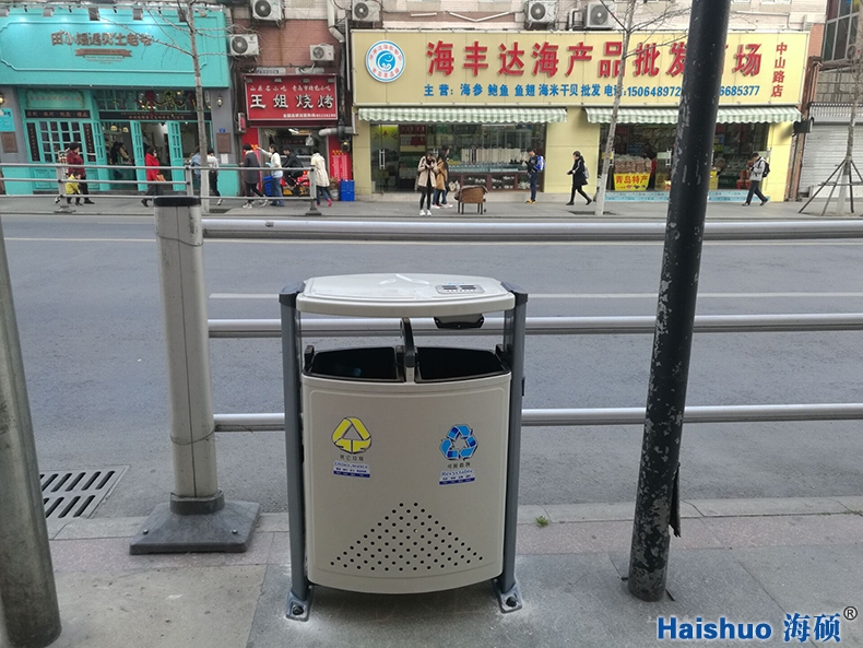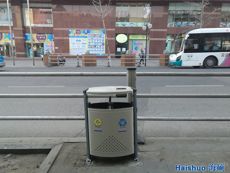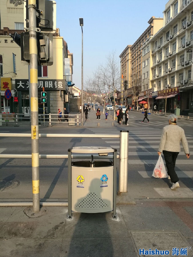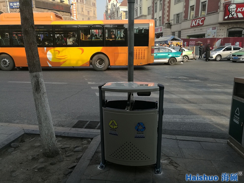 青島海碩戶外分類果皮箱HS-01,于普通垃圾桶比較而言,增加了桶身的強度,使之經(jīng)久耐用,并且美觀好看