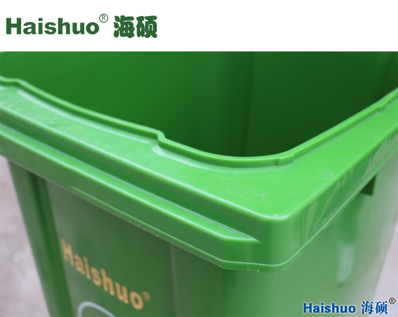 海碩HS-240L T-加厚型環(huán)衛(wèi)垃圾桶 詳細(xì)說(shuō)明:海碩HS-240L T-加厚型環(huán)衛(wèi)垃圾桶,采用全新高密度聚乙烯HDPE磨具壓制成型,可與專用垃圾收集車配套使用。1、桶身沿口加強(qiáng)筋的設(shè)計(jì)布局,使此款垃圾桶比普通垃圾桶承重能力更強(qiáng)大。2、海碩家的桶身前后承力部分有豎向加強(qiáng)筋,底部同樣加厚加強(qiáng)。3、本產(chǎn)品采用全新高密度聚乙烯,使垃圾桶耐老化,抗沖擊力有了更大的提升。
