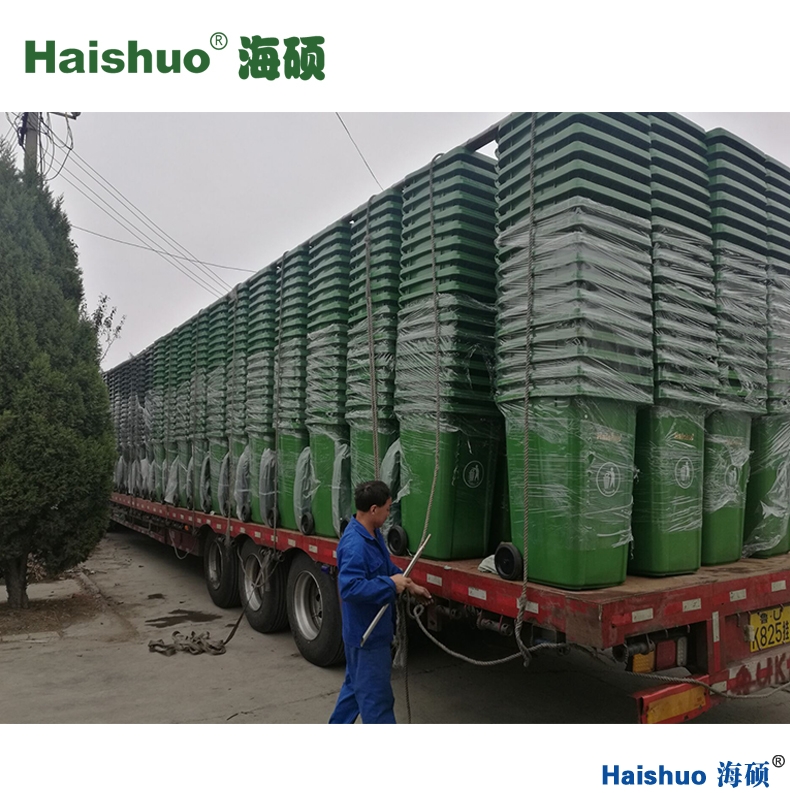 青島海碩 HS-120L-B環(huán)衛(wèi)垃圾桶,全面加強(qiáng)的桶身能夠配合汽車升降機(jī),使掛車升降時(shí)不破損。