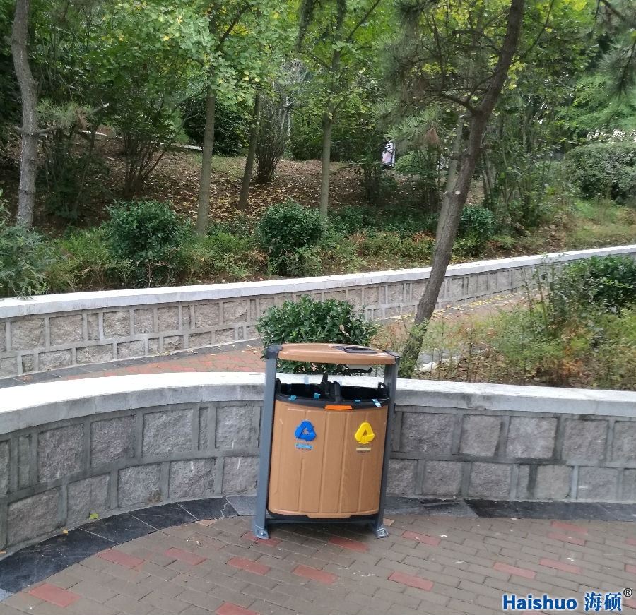 青島海碩戶外果皮箱HS-X-01A ,與普通垃圾桶比較而言,增加了桶身的強(qiáng)度,使之經(jīng)久耐用,并且美觀好看