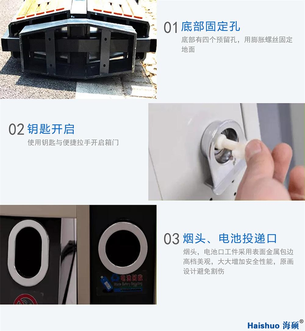 詳細(xì)說明:青島海碩戶外分類果皮箱HS-02A,是青島海碩環(huán)保設(shè)備有限公司為青島等地安裝的分類果皮箱,材質(zhì)為鍍鋅板。果皮箱表面涂料均勻光滑,同時個性化設(shè)計,使用方便、實用,美觀大方,適合小區(qū)、景區(qū)等戶外場所使用。