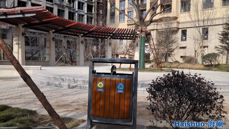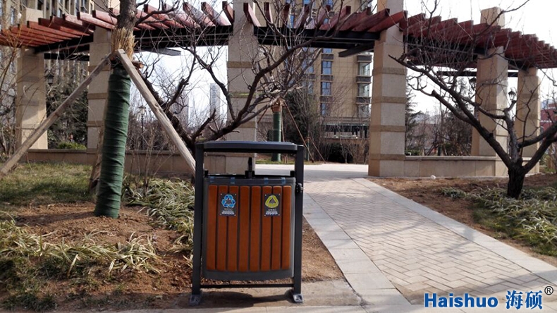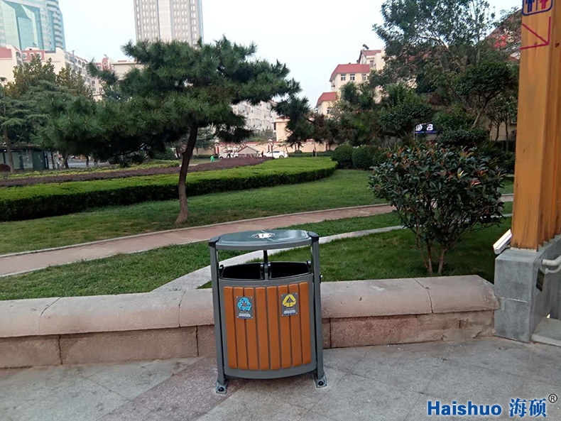 青島海碩分類環(huán)保果皮箱HS-01A,與普通垃圾桶比較而言,增加了桶身的強(qiáng)度,使之經(jīng)久耐用,并且美觀好看