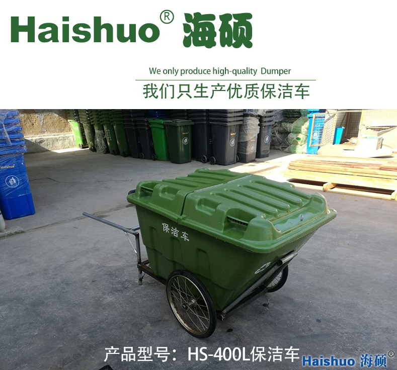 青島海碩HS-400L保潔車,擁有超大的庫(kù)存,歡迎您隨時(shí)來海碩環(huán)保訂購(gòu)垃圾桶,我們以高效率為您發(fā)貨