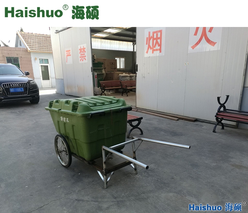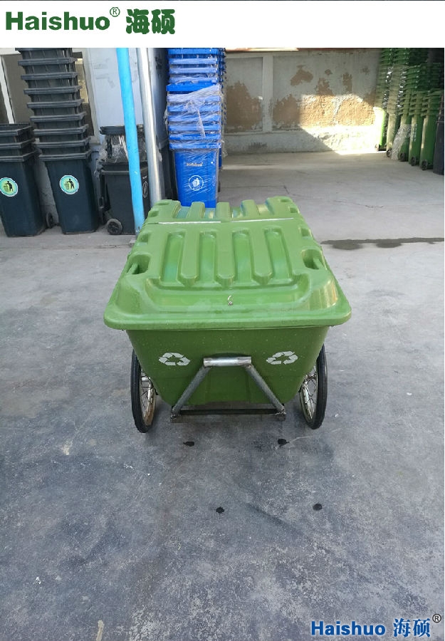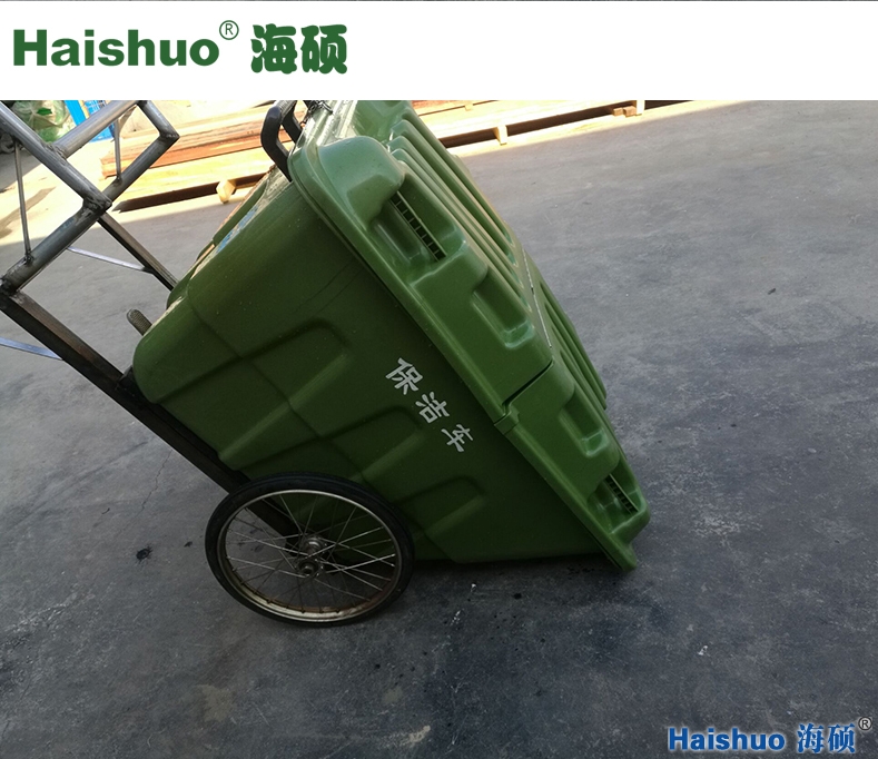 產(chǎn)品名稱:海碩HS-400L保潔車、400L環(huán)保塑料垃圾桶、戶外塑料垃圾箱、青島掛車垃圾桶廠家