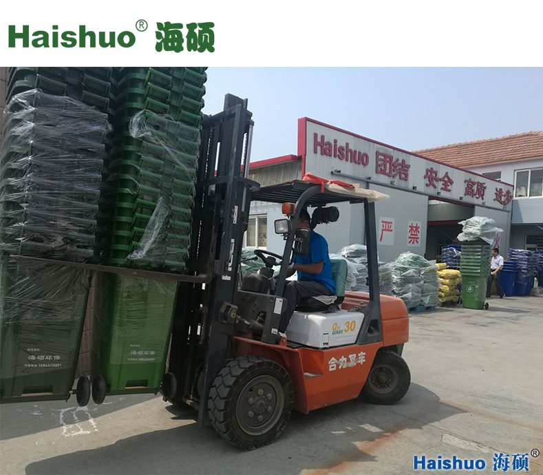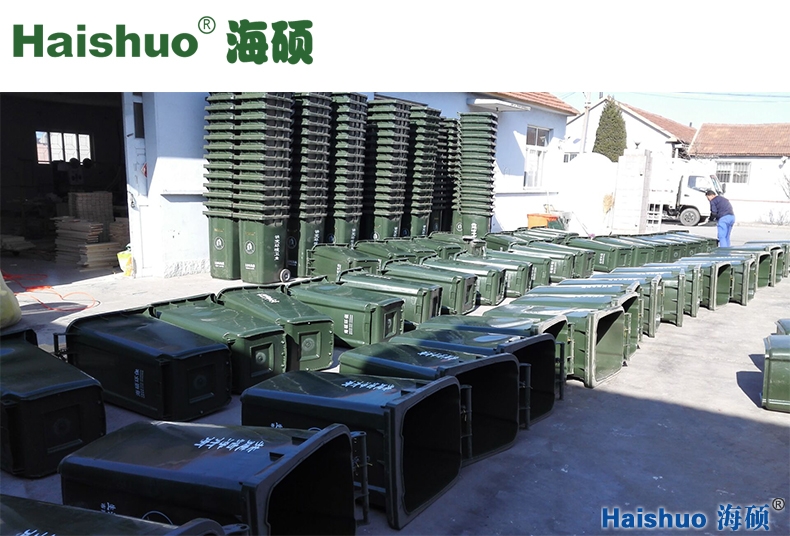 青島垃圾桶 青島海碩保潔車 采用全新高密度聚乙烯HDPE磨具壓制成型,