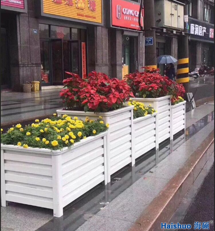 青島海碩環(huán)保設(shè)備有限公司專業(yè)支持定制各種戶外PVC花箱,鋁合金花箱,景觀木質(zhì)花箱等,