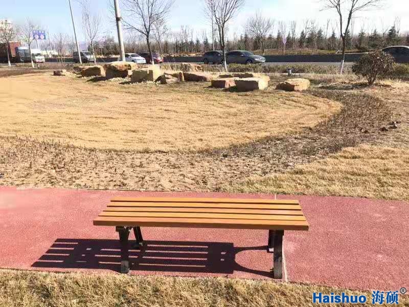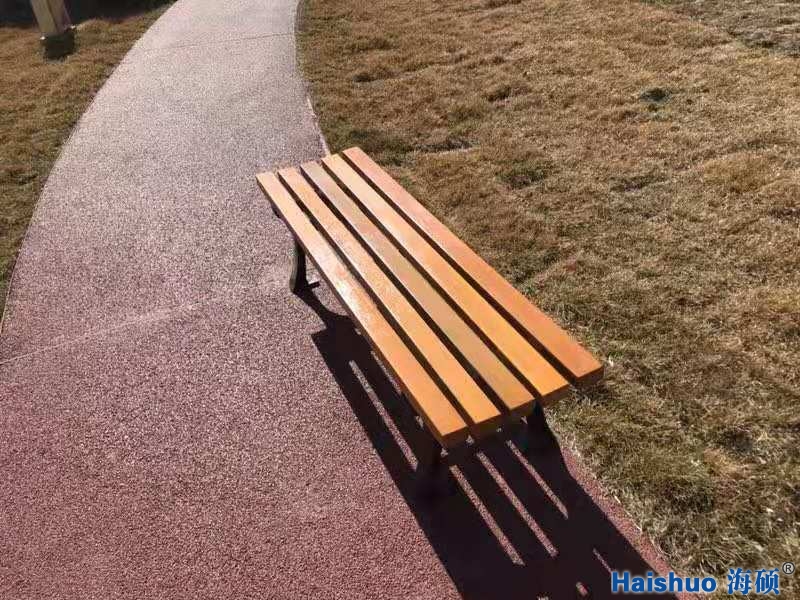 海碩戶外休閑椅選材優(yōu)質柳桉木,特殊工藝不暴漆,質保五年。
