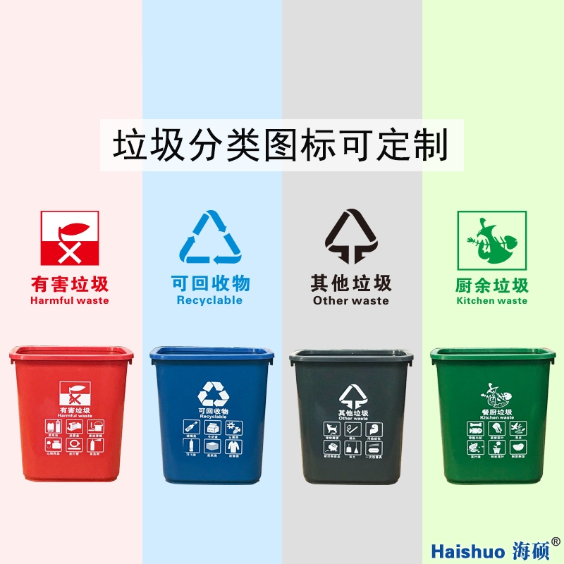 HS-FX15A室內(nèi)四分類垃圾桶四色垃圾分類,防曬抗老化,耐凍防裂,耐腐蝕抗沖擊。適合場所:社區(qū)、物業(yè)、辦公室、家庭、室內(nèi)等場所。