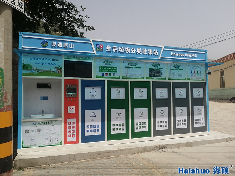 【主要功能】:垃圾稱重功能、線上APP積分兌換、多媒體宣傳服務(wù)、投放后洗手清潔、防雨、照明、監(jiān)控還具有殺菌、除蟲、除臭功能等。