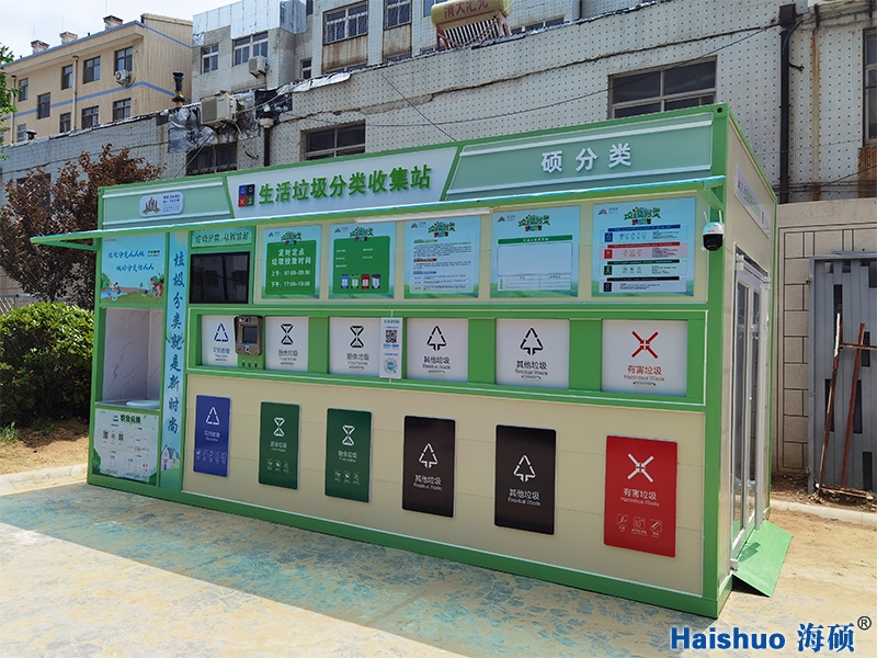 【主要功能】:垃圾稱重功能、線上APP積分兌換、多媒體宣傳服務(wù)、投放后洗手清潔、防雨、照明、監(jiān)控還具有殺菌、除蟲、除臭功能等。