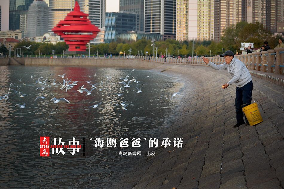 “這也算是個承諾吧!比昵,孫方成和妻子一起來五四廣場的海邊晨練,恰好遇到成群的海鷗,本來就很喜歡小動物的妻子,提議每天都帶點吃的過來,喂喂這些小家伙,也就是從那時開始,孫方成和妻子養(yǎng)成了每天來喂海鷗的習慣。后來因為妻子身體的原因,喂海鷗的任務(wù)就落在了孫方成身上。