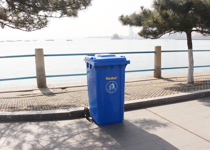 以下是我們青島海碩環(huán)保給青島第一海碩浴場(chǎng)提供的藍(lán)色塑料垃圾桶產(chǎn)品實(shí)景圖: