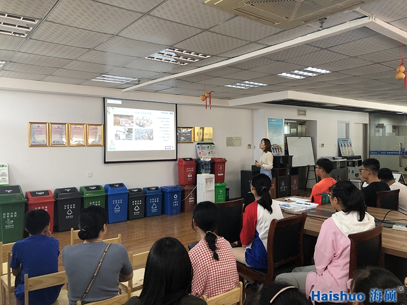 上午8:30,帶隊(duì)的仇老師和幾位同學(xué)們及熱心家長(zhǎng)就已經(jīng)陸續(xù)到達(dá)海碩環(huán)保公司總部。當(dāng)30余位同學(xué)到齊后,海碩環(huán)保于老師開始為大家分享垃圾分類知識(shí)。