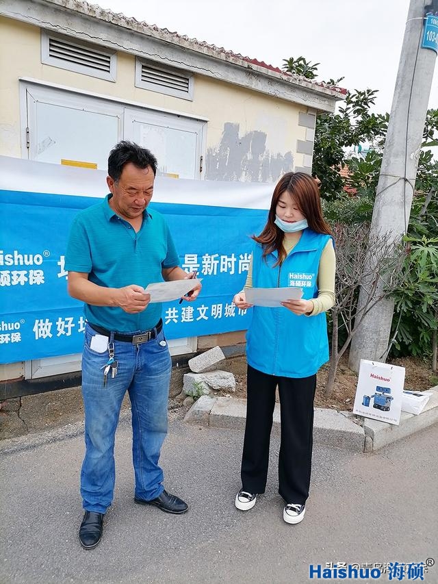 海碩環(huán)保宣講人員向過路居民發(fā)放宣傳資料