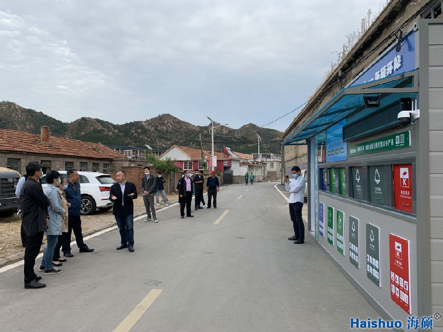 嶗山區(qū)城市管理局領(lǐng)導(dǎo) 調(diào)研青島市垃圾分類(lèi)示范村創(chuàng)建工作,觀摩海碩環(huán)保智能垃圾分類(lèi)收集設(shè)備