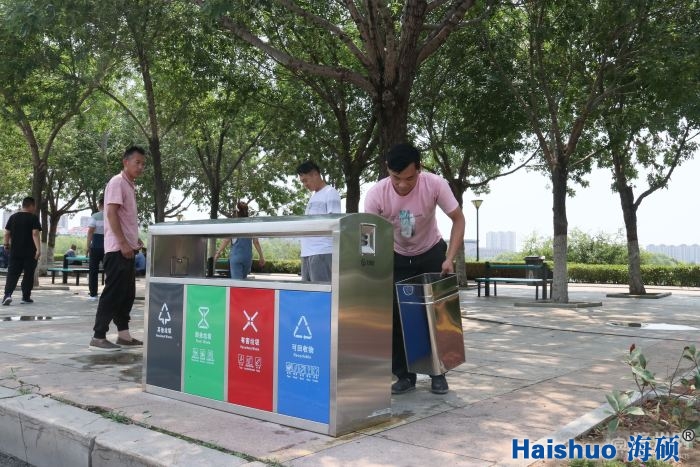 海碩環(huán)保不銹鋼四分類果皮箱走進(jìn)濱州市主城區(qū)